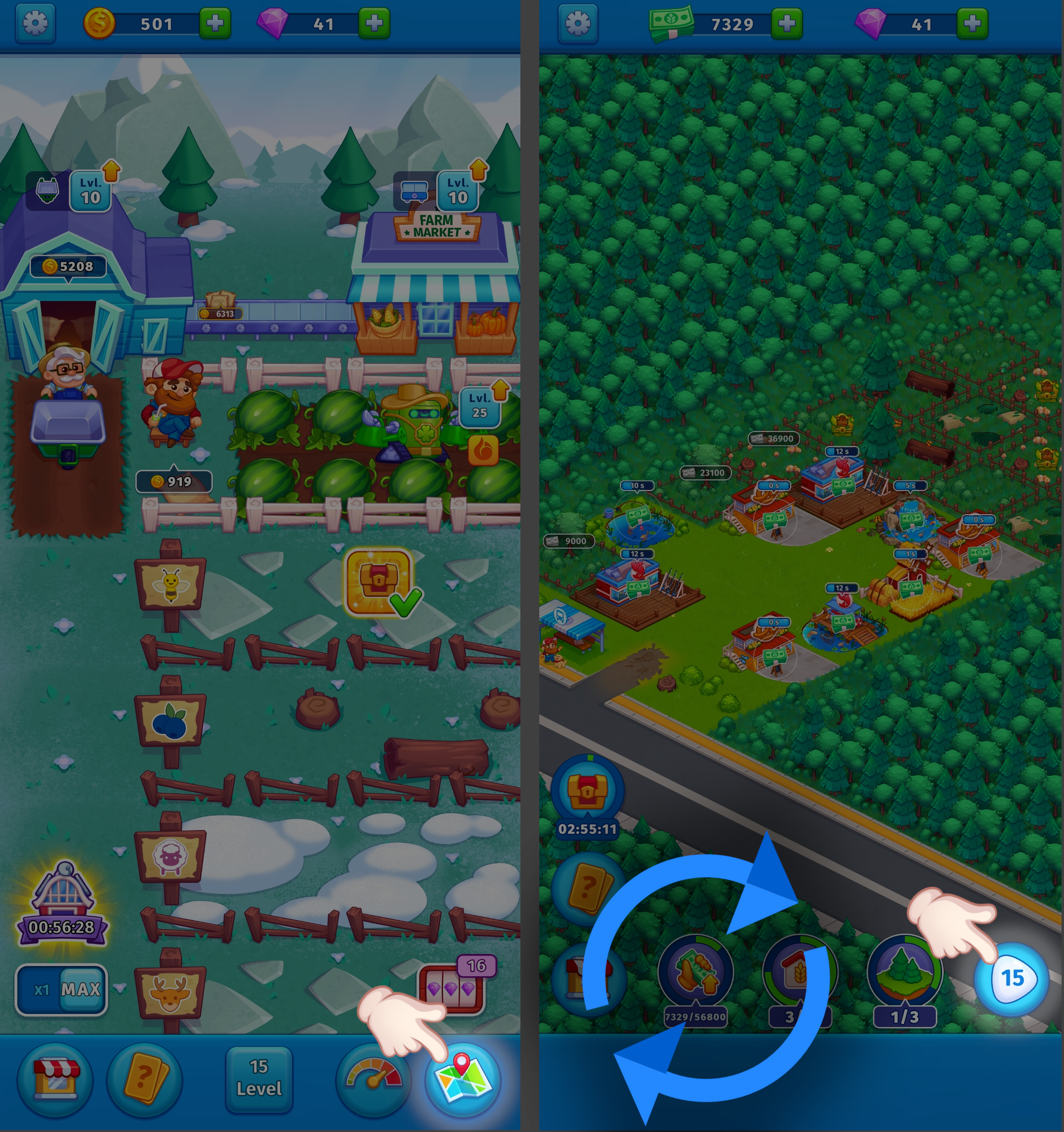 要从城市地图切换到关卡屏幕,请点击右下角的关卡号码按钮。